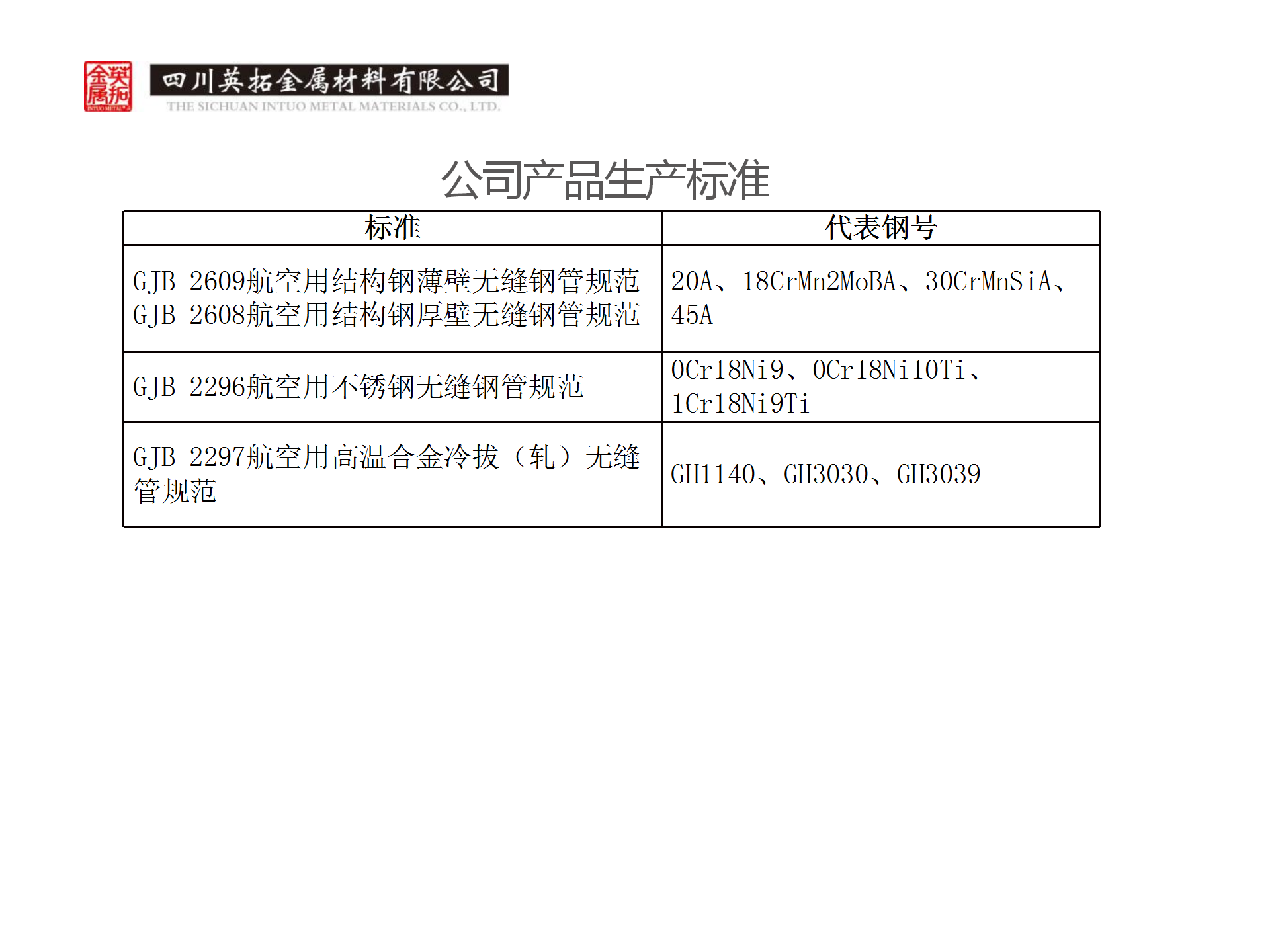 公司產品生產標準
